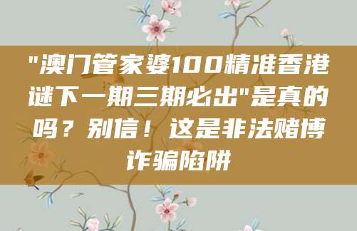 本文针对"澳门管家婆100精准香港谜下一期三期必出"这类非法赌博诈骗内容展开科普,拆解骗子的诱饵与套路,明确参与此类活动的法律风险,教你防骗维权技巧,守护个人财产安全。